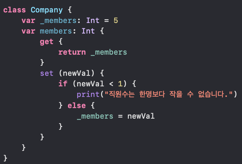 Swift에서는 프로퍼티에 get, set, dedSet, willSet을 사용할 수 있다고 한다.