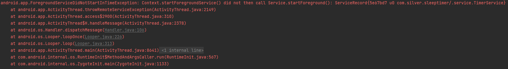 Context.startForegroundService() did not then call Service.startForeground(): ServiceRecord