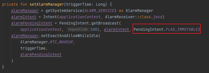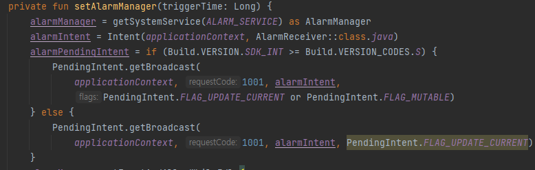 이렇고 내가 기존에 사용하던 Flag는 FLAG_UPDATE_CURRENT 기존에 FLAG_UPDATE_CURRENT를 사용하고 있었다면 다음과 같은 코드가 권장된다고 한다.