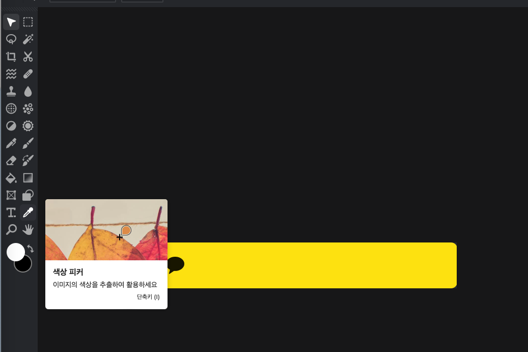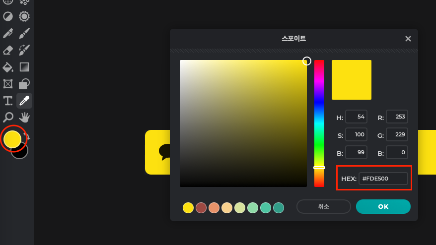 왼쪽에서 스포이드 모양의 색상 피커를 누르고 노란색 부분을 콕 찍어보자