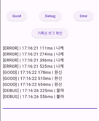 앱 내부 캐시 폴더에 로그 파일을 생성하고 로그를 기록해준뒤 로그 출력 버튼을 만들어 로그 기록을 확인할 수 있게 할것이다.