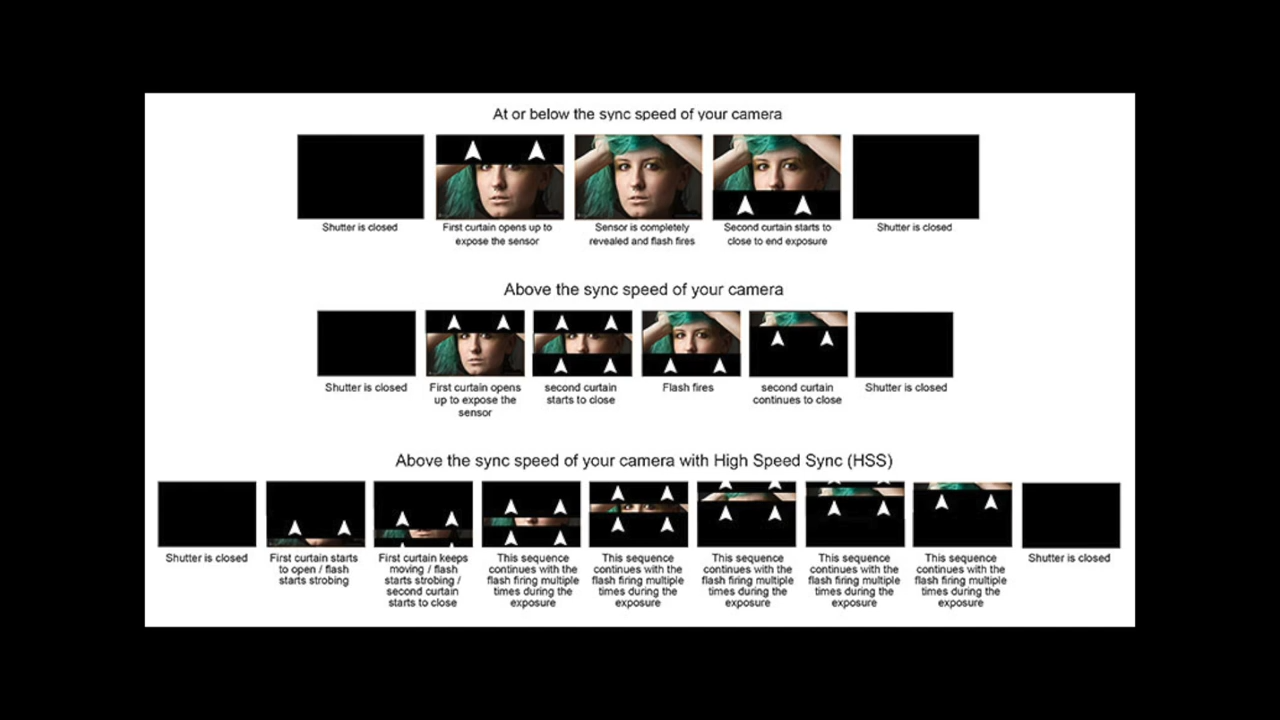 만약 어두운 환경에서 셔터스피드를 1초정도로 느리게하여 플래시 촬영을 할 경우 플래시가 지속되는 잠깐의 순간 말고는 이미지 센서에 아무것도 찍히지 않기 때문에 사실상 셔터스피드가 몇만분의 1초인것 처럼 촬영된다.